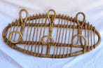 - Porte-chapeaux - Rotin, Bambou - Porte-manteau ovale vintagePorte-manteau vintage ovale en rotin, osier et bambou d’origine italienne, style design des années 50–60, dimensions 84,5 × 45 × 15,5 cm et trois crochets doubles, en excellent état.