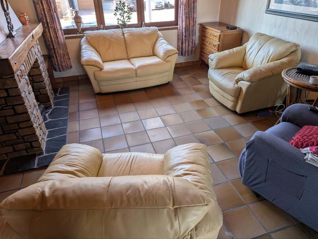 - Salon cuir 2-1-1Salon cuir (univers du cuir) 1 canapé 2 place, 2 fauteuils. Couleur jaune clair, état impeccable, maison non fumeur, sans animauxComme neuf Enlèvement
