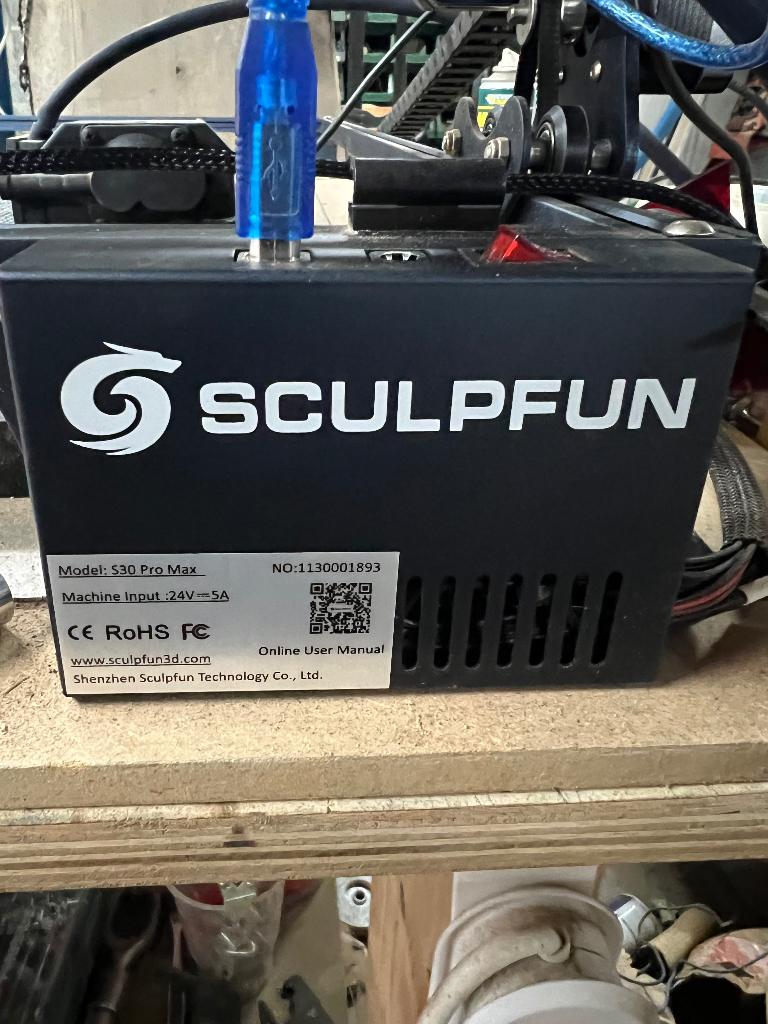 - Sculpture au laser S30 Pro MaxSculpfun s30 pro max, surface de travail étendue à 930 mm x 905 mm. 30 Watts avec assistance pneumatique et acheminement des câbles. Fonctionne parfaitement, peut être testéComme neuf Enlèvement