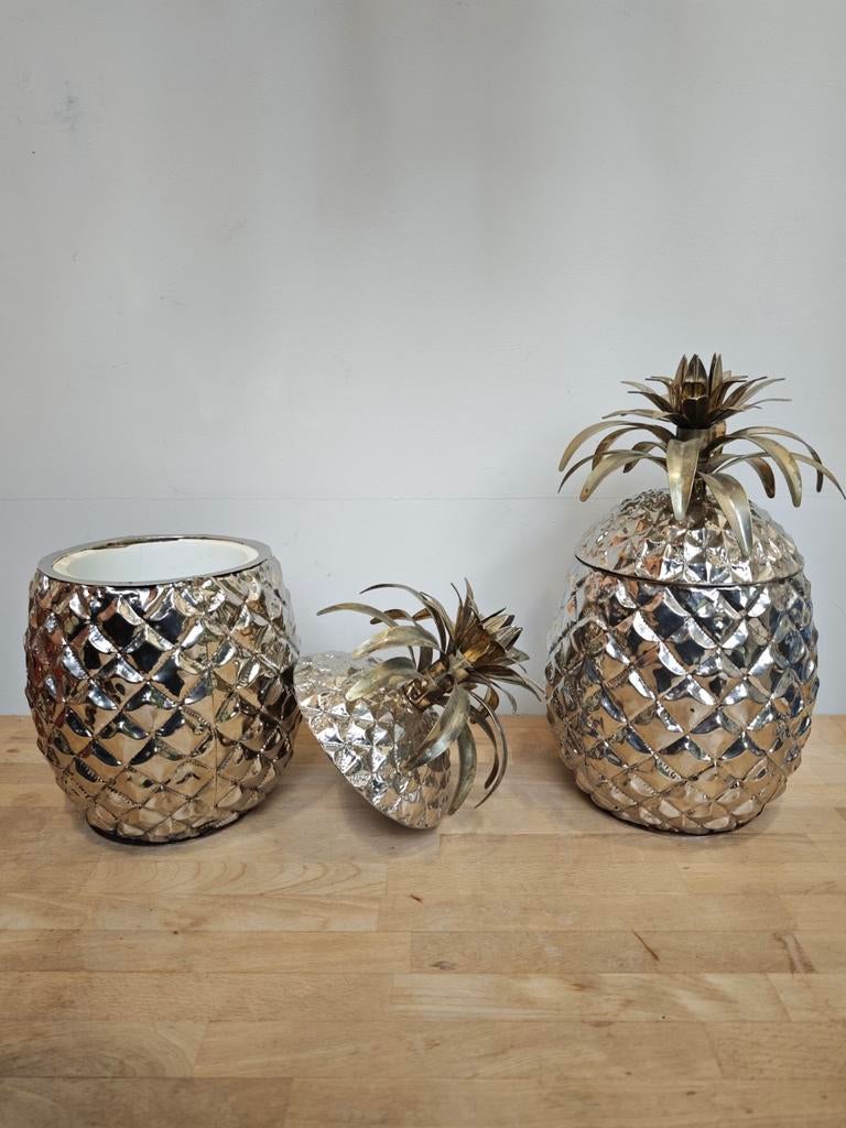17 sept. 25TweedeAnnsHasselt - Porte-glaçons Pineapple des années 1970Récipients à glace en métal argenté des années 1960 et 1970, grand modèle. Le prix est pour les 2, le seau intérieur en plastique a quelques bords comme indiqué sur les photos. Ils sont toutefois stupEnlèvement ou Envoi