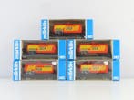 HierPub au topCatawikiToute la Belgique - Märklin H0 - 4561 - Ensemble de wagons de marchandises pourMärklin h0 ensemble de wagons de marchandises, 5 pièces, comprenant cinq wagons-citerne à 2 essieux avec impression seca, référence 4561, presque neuf et emballage d'origine.