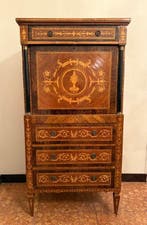 5 mars 26Pub au topCatawikiToute la Belgique - Secrétaire à abattant - Bois - Hauteur : 151 cmVitrine bar italienne en bois, style néoclassique luigi xvi antique, période 1940–1950, marquetée de bois variés, quatre tiroirs à l’avant et un grand compartiment ouvrant, hauteur 151 cm, largeur 78