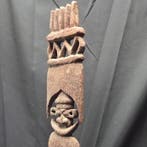 - Très rare, section supérieure d’un finial de toit en boisSection supérieure originale d’un finishing en bois houp venu de nouvellecalédonie, mesurant 74 cm de haut, en bon état, présentant un visage stylisé en haut.