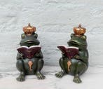 - Serre-livres - Résine - Royal GrenouillesEnsemble de deux lourds serre-livres en hars représentant des grenouilles royales lisant un livre, datant de 2010–2020, origine europe, en état neuf.
