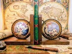 - Serre-livres - Bois, Métal - Serre-livres GlobesPaire de serre-livres en bois massif avec sphères armillaires en métal, style antique, période estimée 1950–1960, fabriqués en france, bois massif avec sphères métalliques, dimensions 16 x 14 x 9,5 cm