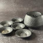 - Service à thé - Fer - Nanbu Tekki du SudEnsemble de thé sencha en fonte nanbu tekki d’origine japonaise, comprenant un kensui avec couvercle perforé amovible (hauteur 9,8 cm, largeur 15 cm, profondeur 15 cm) et cinq sous-tasses chataku asso