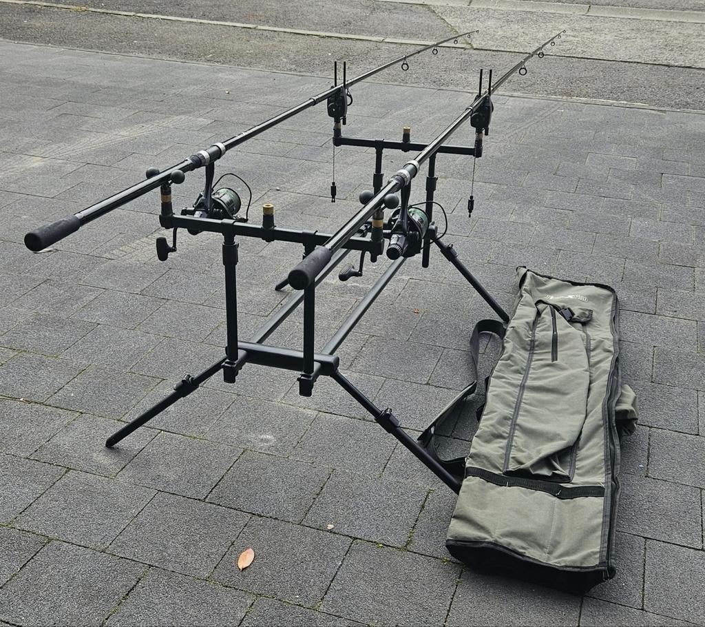 HiernickyWervikmoulins à ventEnlèvementWervikHier - Ensemble complet pêche carpe2 cannes 12' 3lbs en 3 brins 2 moulinet fox eos 10000 baitrunner avec 250m de fils 2 détecteurs électronique réglable 2 swinguer black série 2x2 barre enti éjection 2 suport cannes arrière 1 rodpoEnlèvement