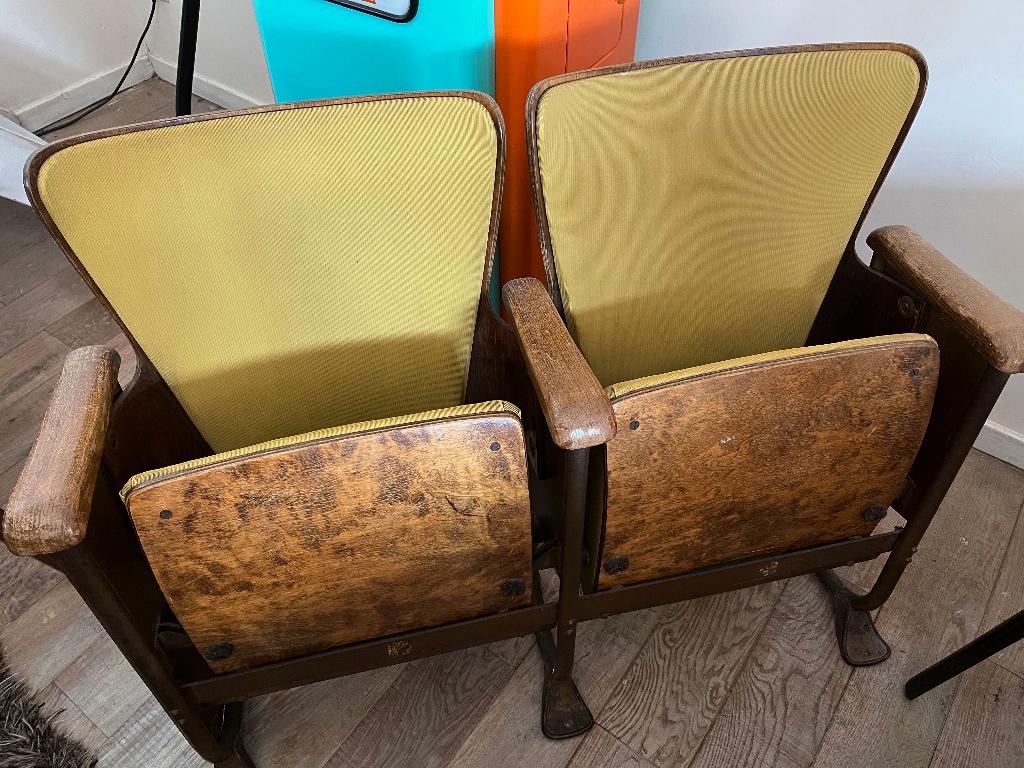 - 2 magnifiques sièges de cinéma des années 502 belles places de cinéma des années 1950 - du cinéma gand majestic (veldstraat) - très bon état - patine naturelleEnlèvement
