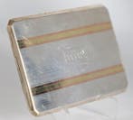 13 janv. 26Pub au topCatawikiToute la Belgique - Silber Zigarettenetui Sterling 925 ESCO 14K Goldauflage 106gZilveren sigarettenkoker met gouden laagje (esco, sterling)rechthoekige sigarettenkoker van zilver met dwars lopende sierstrepen in 14k gouden laag. Aan de voorkant gegraveerd monogram „h.h.w.“.Binnen