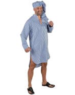 - Blauw geruit slaapkleed met nachtmutsCarnavalskleding-heren.-Nachthemd-met-slaapmuts-wit.-Grappig-kostuum-en-geschikt-voor-carnaval-2020!-Ga-verkleed-als-slaapwandelaar-of-schmink-je-wit-en-jaag-iedereen-de-stuipen-op-het-lijf-als-geest-Ophalen of Verzenden