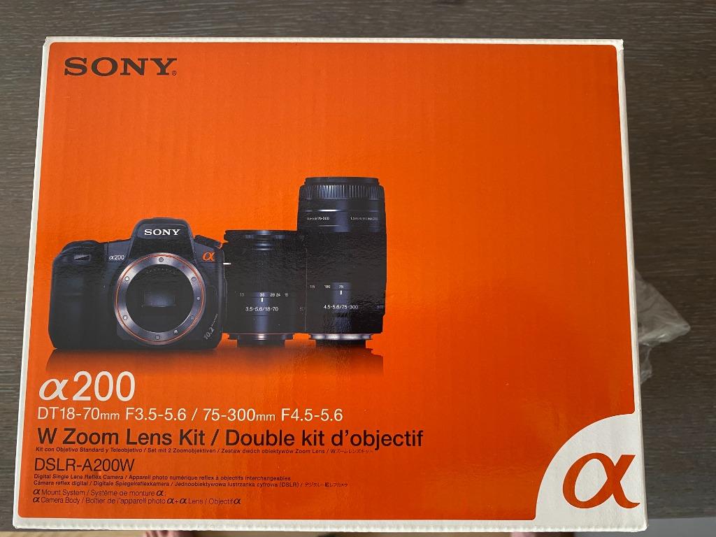 - fotocamera Sony a200 + lenzenFotocamera sony a dslr - a200 body lens: dt 18-70 f/305 -5.6 Lens: zoom 75-300 f/4,5 -5,6 lenzen voorzien van uv-filters geheugenkaart batterij + lader handleiding prijs body:100€ prijs kleine leUtilisé Enlèvement ou Envoi