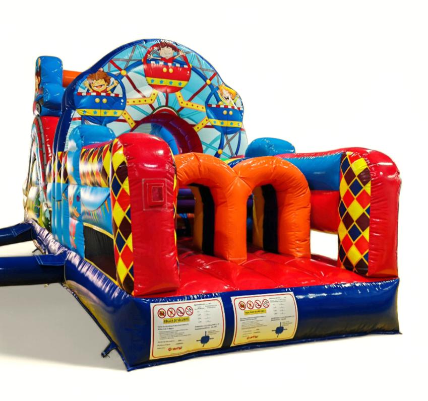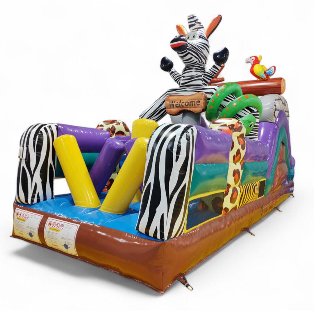 - Château gonflable/parcours à vendre NouveauParcours à vendre thème animaux dimensions la2,4 x lo7,5 x h 4,0 m avec obstacles, mur d'escalade, toboggan 120 kg avec tous les certificats nécessaires sac de transport kit de récupération ancragNeuf Enlèvement