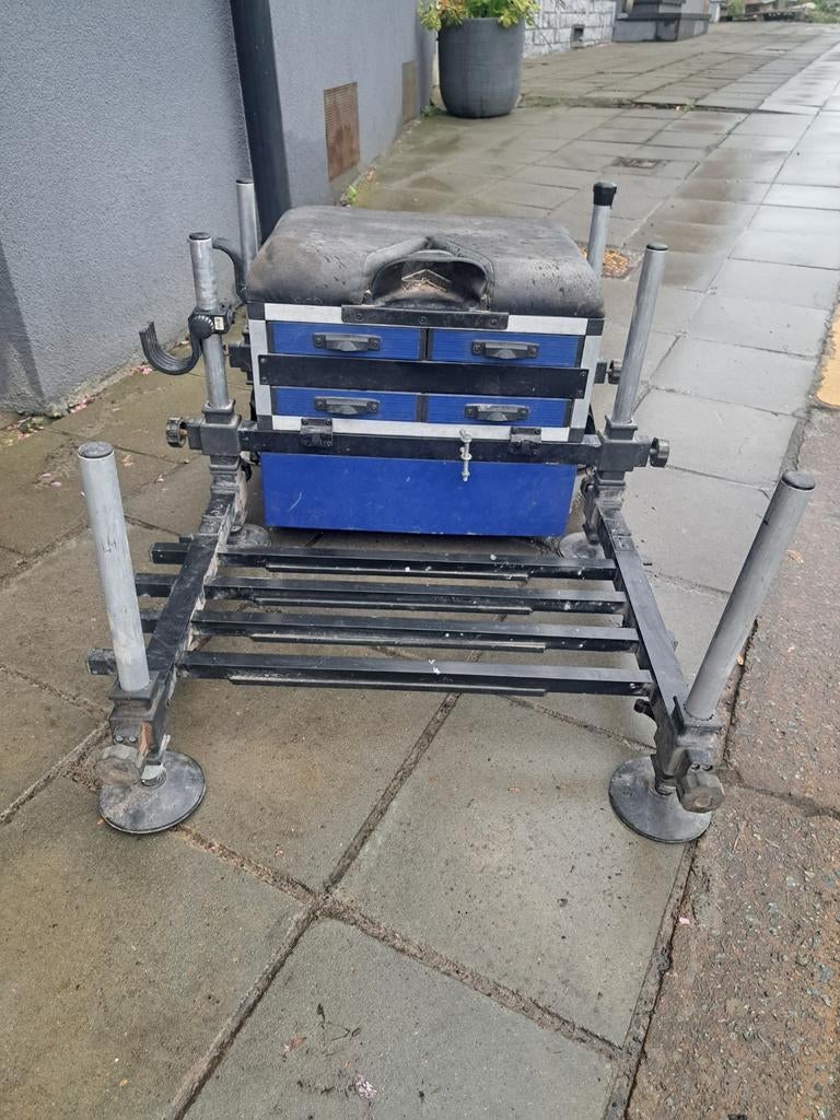 HierdenisAntoing - Station de pêche Sensas D25Superbe station sensas tout équipé avec support cannes , bourriche , parapluie , filet a déboîter , autre support canne , repose pied , multiple tiroir et valise indépendante avec un siège sensas tourComme neuf Enlèvement