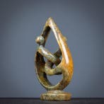 Avant-hierle grenier du lavuChapon-Seraing - Statue, Two people Together - 250 mm - pierre serpentine -Une sculpture signée à la main datant de 2021, taillée dans de la serpentine originaire du zimbabwe, intitulée « two people together », mesurant 70 mm de largeur, 250 mm de hauteur et 130 mm de profon