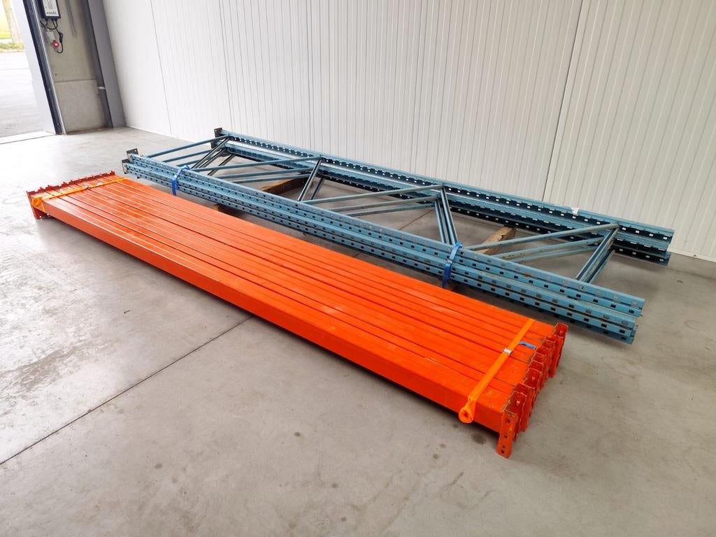 7 mars 26JvSOverpelt - Palletstelling REDIRACKGrote palletstelling van het merk redirack totale afmetingen - 7,5meter lang - 105cm diep - 4meter hoog set bestaat uit - 3 staanders (400x105cm) - 12 liggers (360cm) goed voor 32 europalleten, maar uEnlèvement
