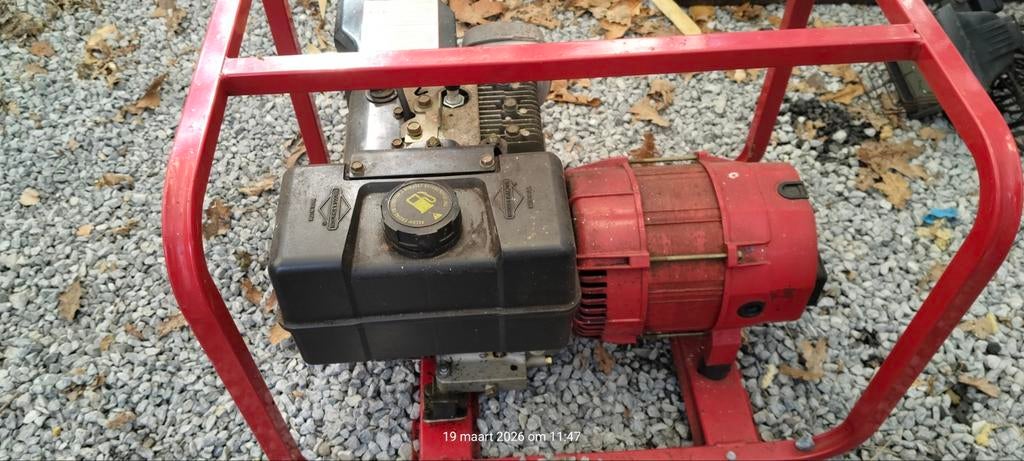 25 mars 26KarlienZulteSTORK Pomp werkt 100 procentEnlèvementZulte25 mars 26 - Stroomgroep +hydrofoor pomp en storkWerkende generator brigs en stratton ( met volle benzinetank (kan getest worden) + 2 hydrofoorpompen + stork pomp. Alles in een lot, voor 350 euro. Niks appart . Bij interesse 0494 047800Enlèvement