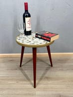 6 avr. 26christophe de ploeySchoten - Bijzettafel - Hout, Keramiek - Mid century bijzettafelMid-century bijzettafel uit nederland met een ronde keramische mozaïektafelblad, een minimalistische metalen rand en drie taps toelopende houten poten, in goede staat met lichte tekenen van ouderdom e