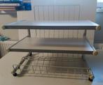 Table à roulette métallique pour imprimante couleur : blanc/gris 2 plateaux : 60 x 32cm hauteur : 44cm (56cm avec le grillage arrière) dimension totale 65 x 48cm très bon état de conservation