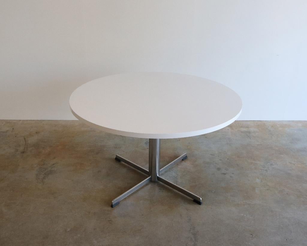 19 mars 25ImportDealsTervuren - Table ronde blanche vintage ø120cmBelle table à manger des années 70. Cette table à manger ronde blanche possède un magnifique pied chromé de style pastoe. Joli design minimaliste. S'intègre parfaitement dans les intérieurs vintagUtilisé Enlèvement