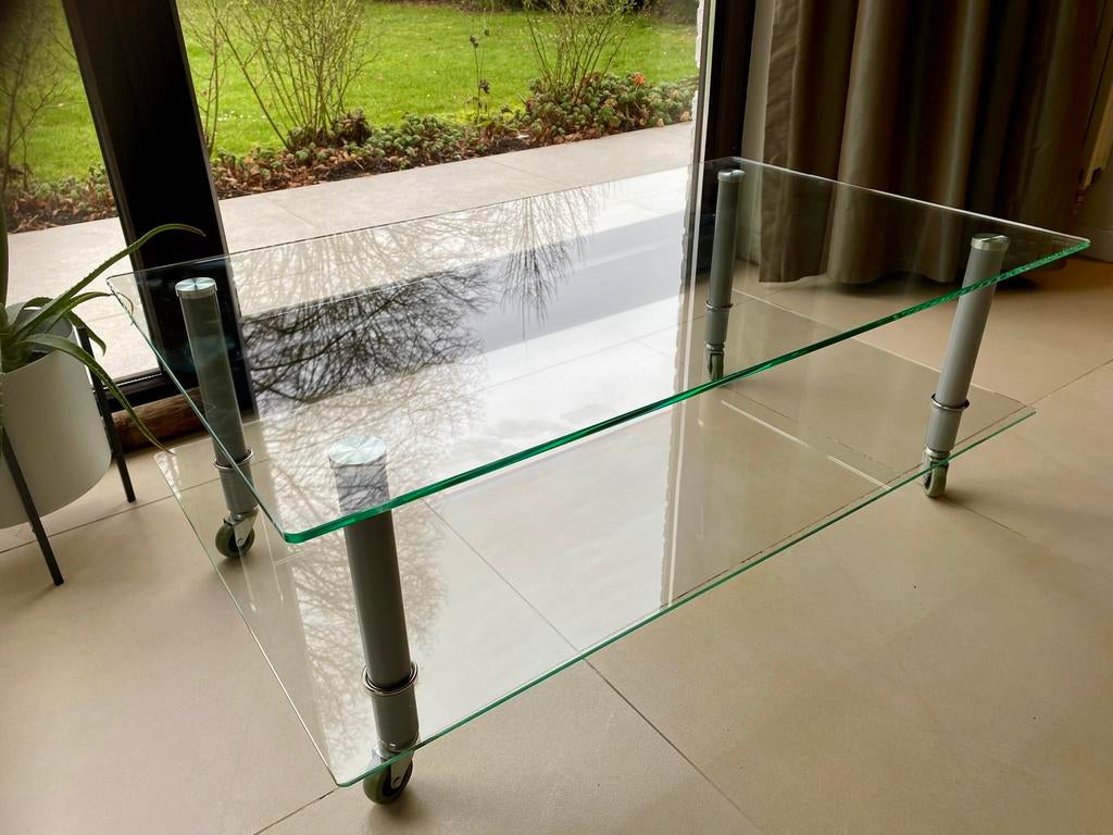 3 nov. 25GaelAntoing - Table basse ou table TV sur roulettesTable basse ou table de télévision. En parfait état. Aucune égratignure. Très stable. En verre. ÉPaisseur du verre : 1 cm. Coins arrondis. Longueur : 100 cm largeur : 60 cm hauteur : 37 cm a récupérerComme neuf Enlèvement