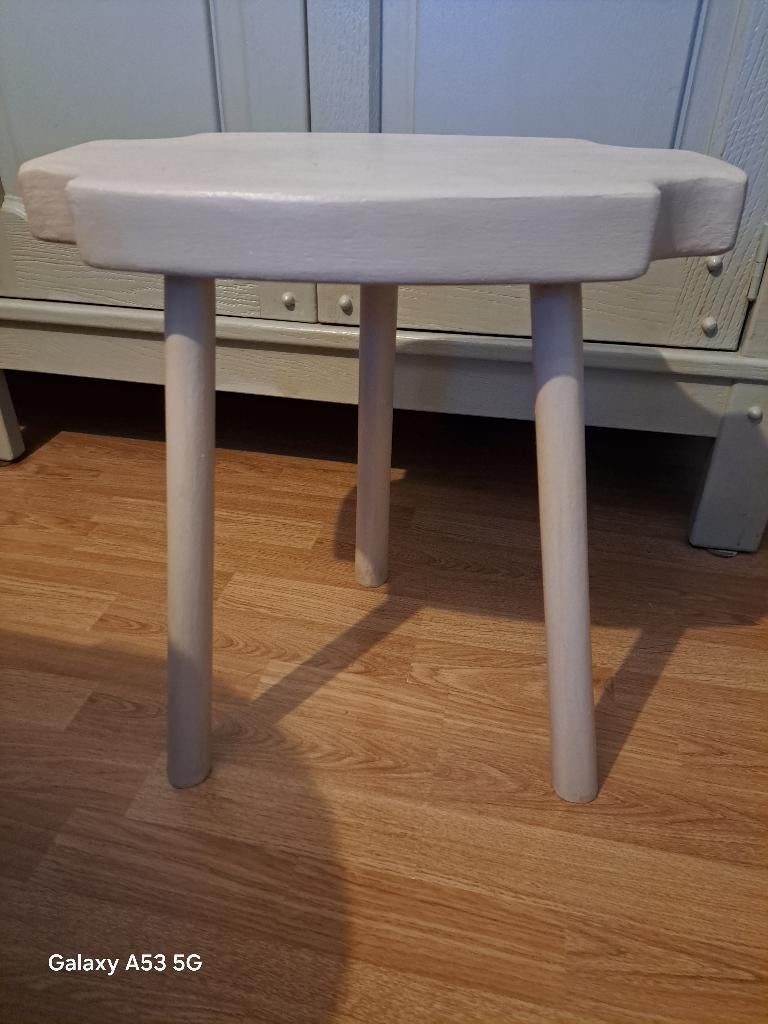 HierSleekUccle - Tabouret de ferme artisanal en chêneTabouret de ferme artisanal en chêne repeint. Dimensions : longueur : 44 cms – largeur : 28 cms – hauteur : 46 cmsEnlèvement