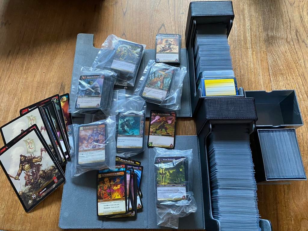 6 nov. 25CatherineAiseau - World of Warcaft - Le jeu de cartes - Grande CollectionDe nombreuses cartes sous sleeve dans boites premium deux fardes collections héros d’azeroth et porte des ténèbres (listes complètes sur demande). Boites spéciales donjons. 2 Tapis de jeu neufs.Comme neuf Enlèvement ou Envoi