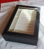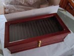 HierRiekeFlobecq - Sans prix de réserve - Vitrine - Bois, Métal, Verre, MousseEtui-exposant en bois avec verre, style contemporain élégant, couleur marron avec verre transparent et accents dorés, fabriqué en france, comme neuf, intérieur tapissé en mousse grise, dimensions 41 ×