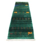 - Gabbeh - Tapis - 233 cm - 74 cm - Tapis Indo ModerneTapis indo gabbeh fait main en laine sur laine, origine inde, état très bien, design modern indo, dimensions 233 cm sur 74 cm, poids environ 12 kg, épaisseur 14 mm, couleur vert.