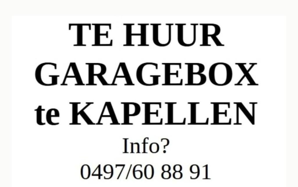 - Garagebox TE HUUR te KapellenTe huur garagebox te 2950 kapellen onmiddellijk beschikbaar hp: 89 eur/maand meer info? Bel 0497 60 88 91