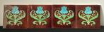 - Jugendstil Tegel (4) - Manufactures Ceramique d’Hemixem -Vier zeldzame wandtegels in geglazuurd keramiek uit belgië, geproduceerd door manufactures ceramique d’hemixem, ca. 1905–1910, In art nouveau/jugendstil-stijl, elk 15,1 × 15,1 cm, met een tulpenreliëf