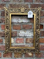 HierJohanRiemst - Lijst - 151. Oude goud vergulde schilderijlijst. VoorAntieke goudvergulde schilderijlijst uit belgië, geschikt voor een schilderij van 40 × 37 cm, buitenmaat 67 × 63 cm en binnenmaat 40,5 × 37,2 cm, gewicht circa 6 kg, in goede staat met kleine tekenen
