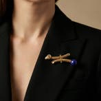 1 mars 26willy dirkxBruxelles - Broche Broche victorienne en or 18 carats à tête de bélier,Broche victorienne en or 18 carats renaissance revival en forme de tête de bélier, pierre lapis-lazuli naturelle, 8,9 g, dimensions 5,8 × 2,5 cm, sans certificat de laboratoire, en bon état.