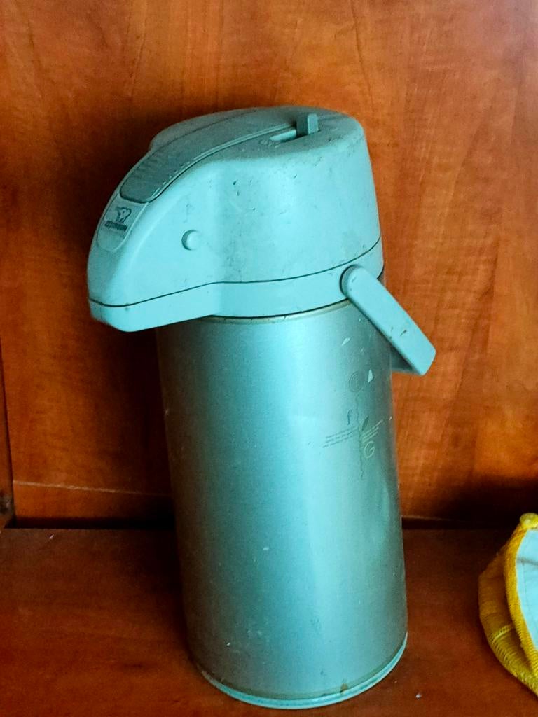 Avant-hierCharlotteBruxelles - Thermos à café avec pompe capacité 2 L - base tournanteThermos à café avec pompe capacité 2 l base rotative , il reste en place au même endroit, et on sait le faire tourner vers une personne en face. Mon épouse l'avait achetée pour notre famille de 4Utilisé Enlèvement ou Envoi