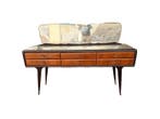 15 avr. 26PlumbagoLandelies - Crédence - Bois, Verre, LaitonBuffet credenza italiano des années 1950 en bois avec verre et accents en laiton, comportant 6 tiroirs et un miroir d’origine, dimensions 188 cm de largeur, 91 cm de hauteur et 46,5 cm de profondeur,