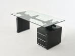 - Tecno - Tecno - Bureau - Acier, Aluminium, Verre -Bureau de direction tecno italie datant de 2010–2020, avec un plateau en verre trempé incolore de 20 mm, structure centrale en aluminium peint époxy noir, piédestal métallique à trois tiroirs avec ser
