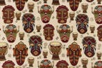 14 juin 24jourdechineJemappes - Tissu Gobelin élégant de 5,00 x 1,40 mètres, avec des motifsOrigine italie tissu gobelin élégant 5,00 x 1,40 m avec motifs de masques en bois tribaux et africains, en parfait état d’utilisation.