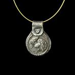 - Oud-Romeins Zilver Romeins amulethanger met borstbeeld enZilveren amuletbedel uit het ancient rome met op de voorzijde een vrouwelijke buste met halsketting en op de achterkant een keltisch paard met maansymbool, daterend uit de 1e eeuw v.chr.–1E eeuw na ch