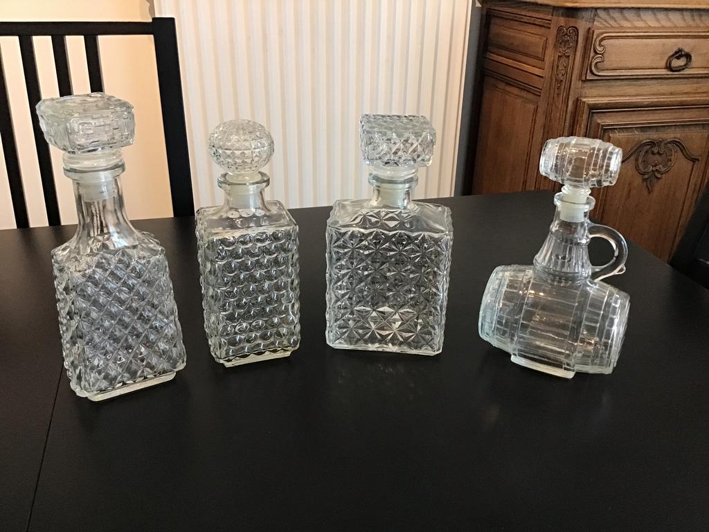 4 avr. 26ldetantNederbrakel - Lot de Carafe à WhiskyLot de 3 carafes rectangulaires en pointes de diamants ainsi qu’une carafe en forme de tonneau en verre et bouchon hermétique.Enlèvement ou Envoi