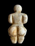 - Neolithisch Marmer Moedergodin - 9.5 cm (ZonderNeolithische marmeren moedergodinbeeldje, staande vrouwelijke figuur circa 6500–5800 v.chr., 9,5 Cm hoog, 4,6 cm breed en 2 cm diep, met naturalistische trekken en duidelijke heupen, restauraties aan