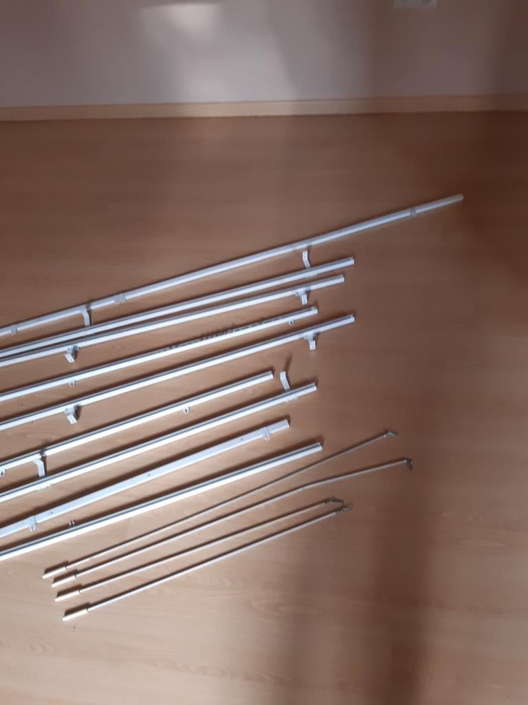 - 9 tringles à rideaux et 4 crochets.9 tringles à rideaux et 4 crochets. 1 De 3m01, 3 de 1m80, 2 de 1m60 et 3 de 1m35.Comme neuf Enlèvement