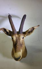 27 mars 26anjacogLinkebeek - Trophée de chasseSpécimen d’antilope d’afrique, dimensions 38 cm de haut, 22 cm de large et 31 cm de profondeur, un seul objet, en très bon état.