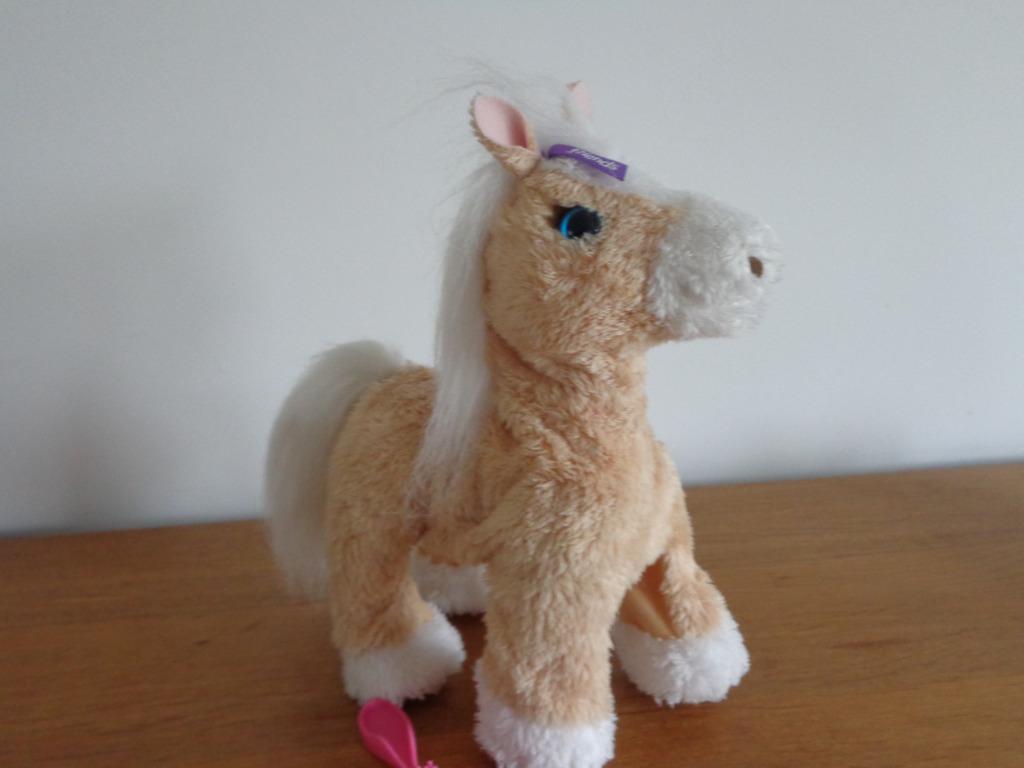 9 nov. 25Diamond_bagBruxelles - Peluche Poney trotteur FurReal de HasbroPeluche en mouvement (trotteur) furreal friends de hasbro poney trotteur "butterscotch". Il trottine, hennit... Fonctionne avec 3 piles 1.5V aa age 4+ excellent état voir aussi mes autres aComme neuf Enlèvement ou Envoi