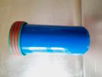 Tupperware, gourde pour enfants, petit ver rouge. Vous pouvez voir à l'extérieur de la gourde qu'elle a été utilisée.