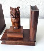 19 mars 26CatawikiToute la Belgique - Boekensteunen - Hout - 2 boekensteunen met uilenGelakt houten boekensteunen in art deco-stijl uit circa 1930–1950, vervaardigd in nederland, in uitstekende staat met nauwelijks gebruikssporen. Stel boekensteunen, vervaardigd uit gelakt hout. Twee m