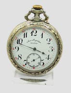 12 avr. 26alexisSeraing - Doxa - Mächtige Argentan Taschenuhr - Top EmaillerückeiteMontre de poche doxa en boîtier argentan de plus de 50 mm de diamètre, mouvement à remontoir manuel, cadran émail blanc à chiffres arabes, aiguilles acier bleui, dos gravé avec un berger et ses vaches