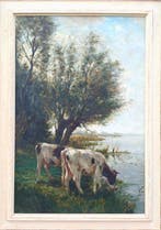 26 juil. 23Pub au topCatawikiToute la Belgique - Jan J. van der Stap (1874-1940) - Landschap met koeienLandschaft avec des vaches, peinture à l'huile sur toile de lin des pays-bas, vendu avec cadre.