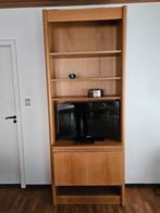 5 nov. 23piaZwevegem - Armoires murales Van den Berghe-PauversArmoires murales de vandenberghe-pauvers bois plaqué en chêne scié sur quartier (également appelé chêne tigré) avec des étagères massives et des accents en laiton. Une avec 3 tiroirs. Une avec bureau,Utilisé Enlèvement ou Envoi