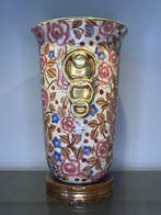 11 avr. 26Pub au topCatawikiToute la Belgique - Keramis Boch, Keramis, Boch Frères - Charles Catteau,Vase en faïence fine art déco, 31 cm de hauteur, décor floral polychrome rehaussé d’or sur fond quadrillé, dessiné par raymond chevalier en collaboration avec charles catteau pour keramis et boch frèr