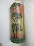 28 mars 26phenixAntwerpenVase Art Déco - Legras.Enlèvement ou EnvoiAntwerpen28 mars 26 - François-Théodore Legras - Vase - Rivoli - VerreVerre, modèle rivoli, paysage avec arbres au bord d’une rivière et des bateaux, en jaunes, oranges et verts, fabriqué en france, période 1910–1920; hauteur 27 cm, largeur 9 cm, profondeur 9 cm, poids