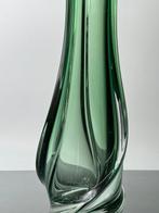 21 nov. 21ccssTremelo - Val Saint Lambert - Vaas - Kristal - Vase vert VSLSmaragdgroene kristallen vaas van val saint lambert (belgië) uit de jaren 1960 uit de fantaisies modernes lijn, met iriserende reflecties; hoogte 35 cm, breedte 11 cm, gewicht 1700 g; uitstekende staa
